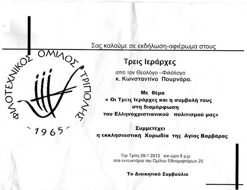 από τον Θεολόγο – Φιλόλογο κ. Κωνσταντίνο Πουρνάρα με θέμα: