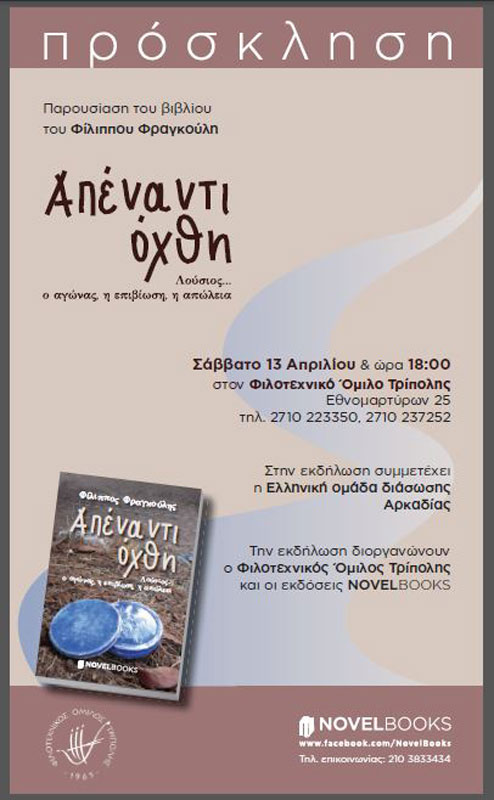 Παρουσίαση του βιλίου του Φίλιππου Φραγκούλη «Απέναντι όχθη»