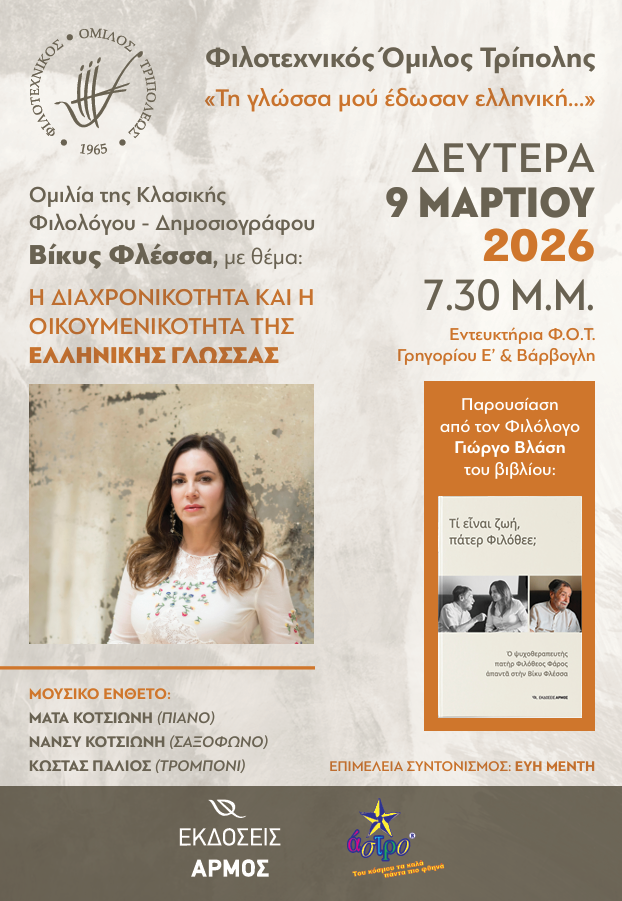 Εκδήλωση για την ελληνική γλώσσα Posted in Εκδηλώσεις, Παρουσιάσεις βιβλίων, Τα Νέα μας, Τα Νέα του Φ.Ο.Τ. by ΜΑΡΙΑ ΚΟΥΤΣΕΛΑ on 03 Μαρτίου 2026 Tweet Please follow and like us: Related Posts Λουκάς Βασιλικός- Εργαστήρι φωτογραφίας Posted on 06 Φεβρουαρίου 2026 Παρουσίαση βιβλίου του Θόδωρου Μαραγκού Posted on 05 Φεβρουαρίου 2026 Εργαστήριο Τεχνικής Κολλάζ Posted on 02 Φεβρουαρίου 2026